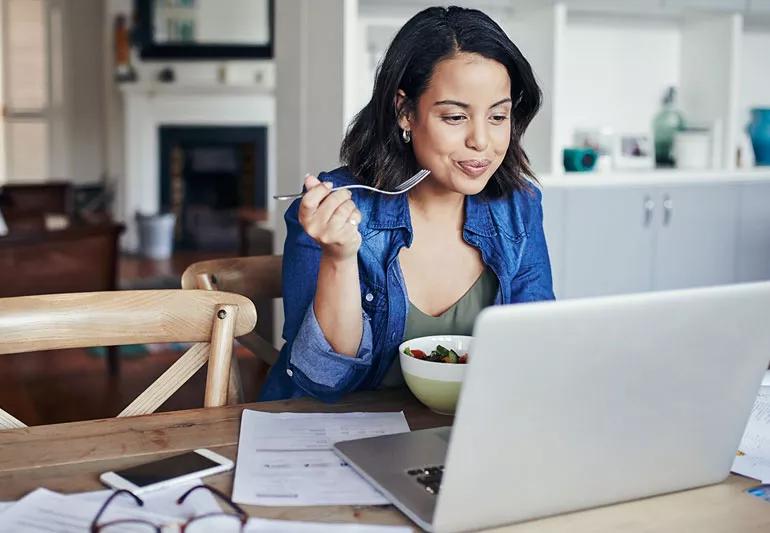 Registered dietitian Anna Taylor, MS, RD, LD, CDCES discusses strategies and hacks for eating healthy while working from home.