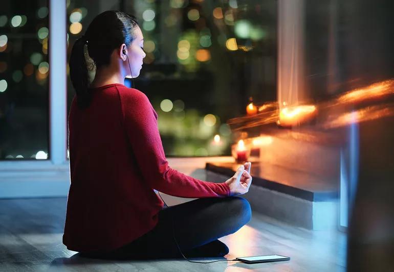 “It could be flipping through magazines, calming yoga stretches or some type relaxing hobby like knitting or coloring,” she says. “Avoid anything that’s goal-directed or too physically or mentally activating such as house chores, paying bills or working on a computer.”