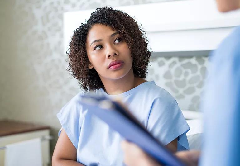 woman in an exam room