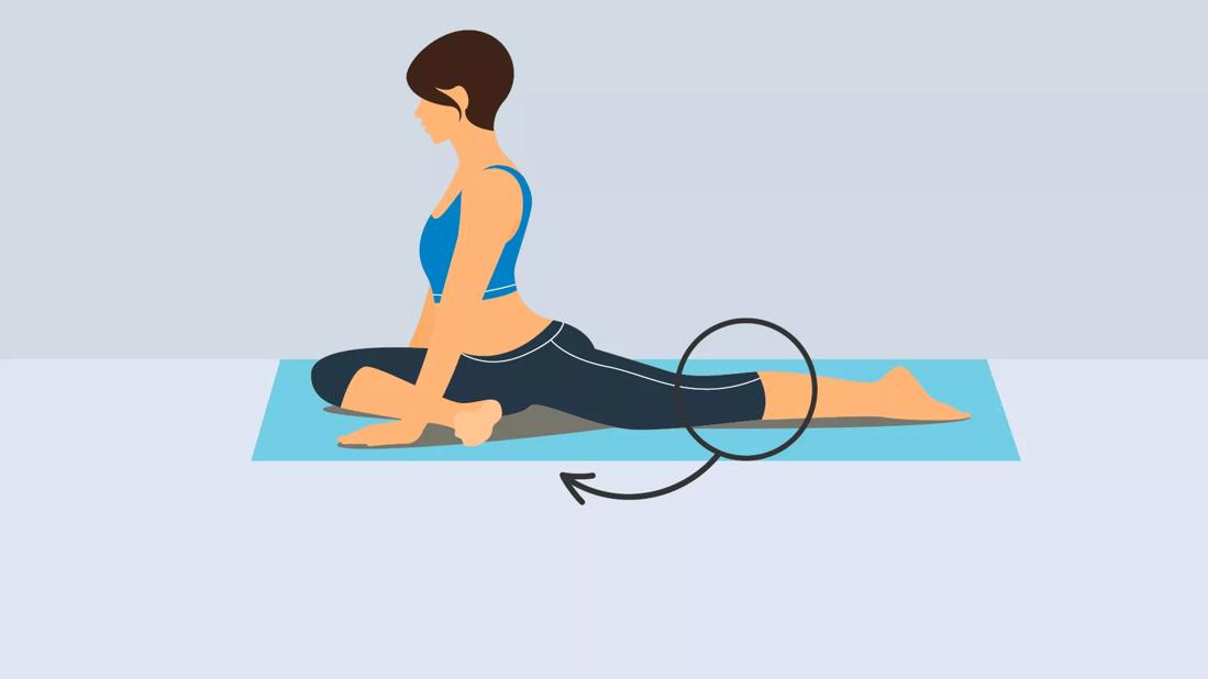While in the 90/90 hip stretch, your front- and back-positioned legs target different muscles.
