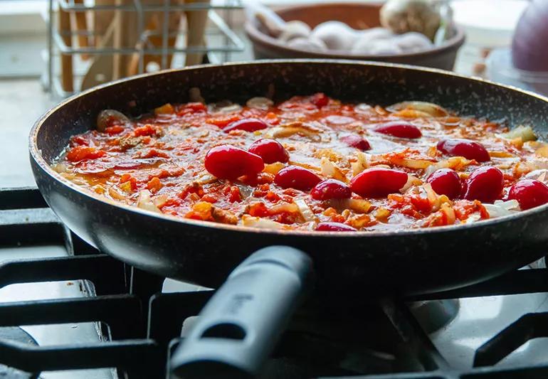 Why not try your hand at making homemade tomato sauce? The freshness of the tomatoes and the smokiness of the roasted vegetables make this a great topping for spaghetti. If you don’t have your own garden, use canned Roma tomatoes for a tasty dish that includes roasted mushrooms, broccoli and peppers.
