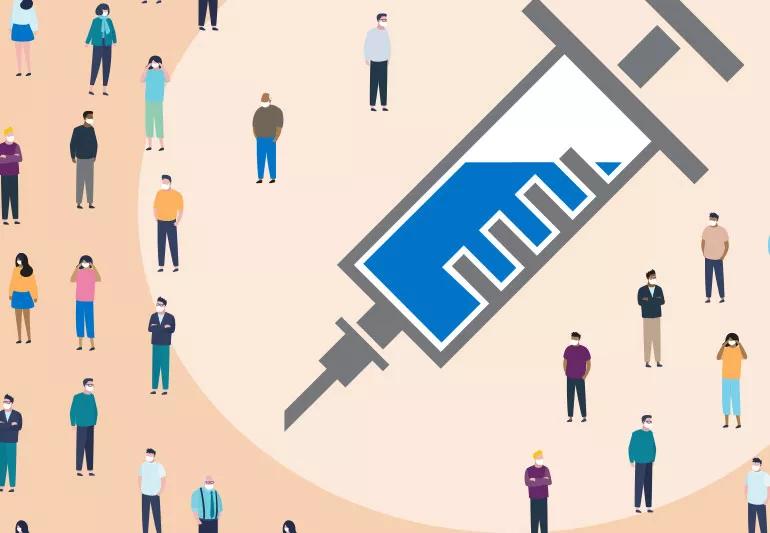 A: A vaccinated person acts as a barrier to slow and prevent the virus from continuing to spread. The ultimate end goal is to get as many people vaccinated as possible so that more people are protected. The entire population benefits from a high vaccination coverage, especially those who are most at risk and vulnerable.