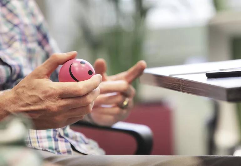 man keeping his hands busy using a stress ball
