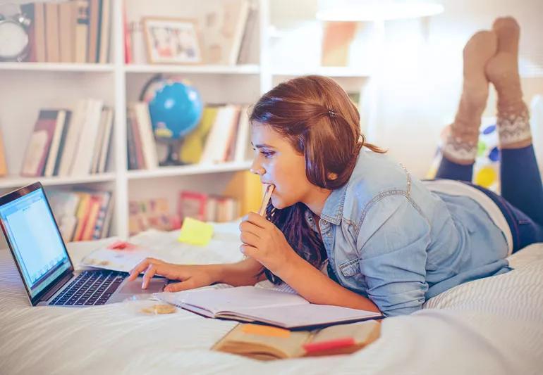 Teen studying in her bedroom