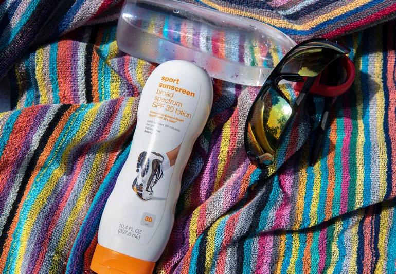 Apply a generous amount of sunscreen all over your body – use at least the amount that would fill a shot glass. Sunscreen works best if it has had time to soak in. Apply at least 15 to 30 minutes in advance of sun exposure for best protection.