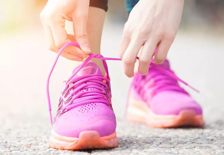 She even recommends getting fitted at a specialized running shoe store instead of your local sporting goods store. “They can tell by your gait whether it’s the right shoe for you,” Dierkes explains. If you have a history of injury or orthopaedic issues, see a physical therapist (PT) first. “We can take measurements and help you understand your foot mechanics, so you know what type of shoe will help prevent future injuries,” she says.