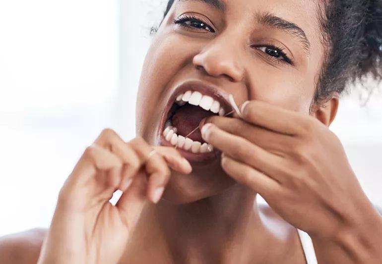 The American Dental Association recommends brushing your teeth at least twice a day and flossing at least once a day. Of course, if you feel like you’ve got a big ole leaf of spinach stuck between your chompers after lunch, there’s no need to wait!