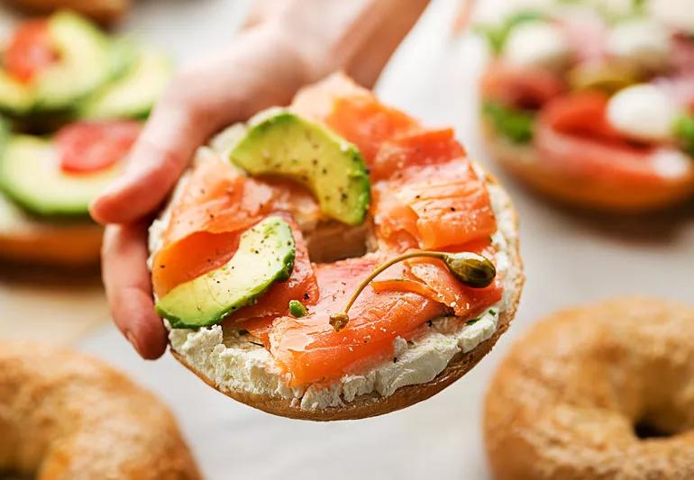 healthy bagel with vitamin D rich salmon on top