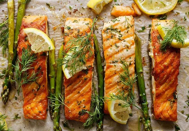 Fish is a foundational source of protein in the Mediterranean diet. “We recommend eating fish at about three meals a week,” Zumpano says. “Any type of fish can play a role and be a good source of protein, but fish high in omega-3s have specifically been shown to suppress inflammation.”