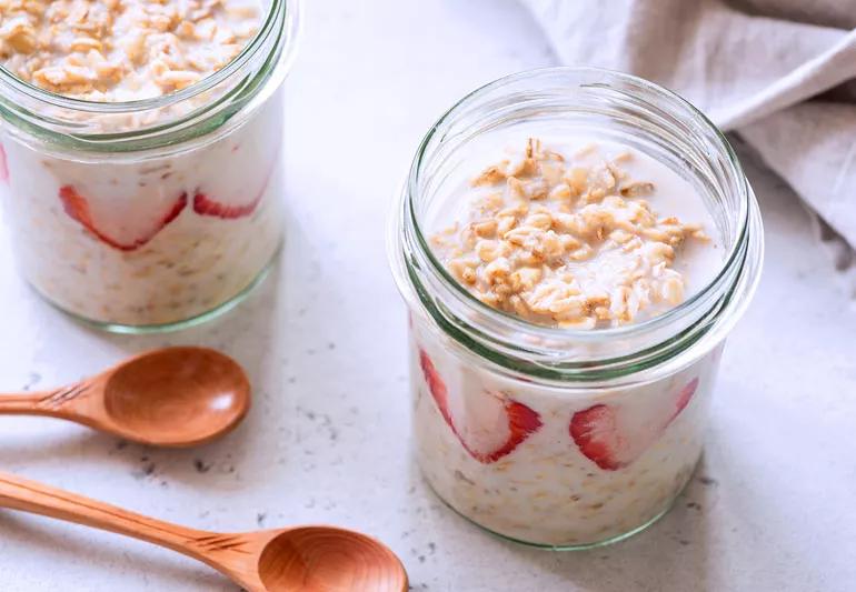 If you’re looking for a simple breakfast that’s healthy, keeps you full until lunch, and is waiting for you in the morning, look no further. Overnight oats – or oats soaked in water, milk or yogurt overnight then topped with your choice of ingredients – are a perfect pick for a healthy start to your day. You’ll get cholesterol-lowering and blood-sugar steadying soluble fiber to help you power through until lunch. And best of all, no cooking required.