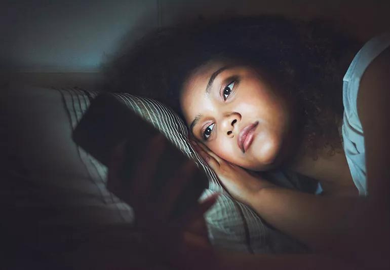 A: 3 Countless teens and adults are exposed to blue light at night from TVs, computers, iPads and cell phones in their bedrooms. These and other electronic devices aren’t dangerous in and of themselves. But researchers have discovered that they interrupt sleep and prevent the deep, restful sleep we need to be healthy.
