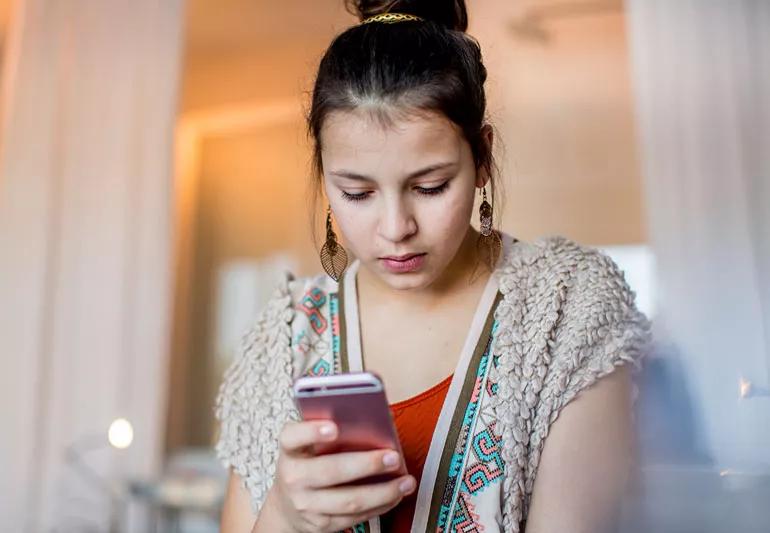 young woman accessing her social channels on her phone