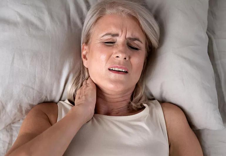 “Then sleeping on your back with the back of your head on your pillow and your head bent forward will only make the problem worse,” Dr. Bang says. “Sleeping with your chin to chest can overstretch your neck as most of our daily activities are done that way. Sleeping on your side with your head bent drastically isn’t ideal wither. And worse still? Sleeping on your stomach with your head twisted and tilted at odd angles.”