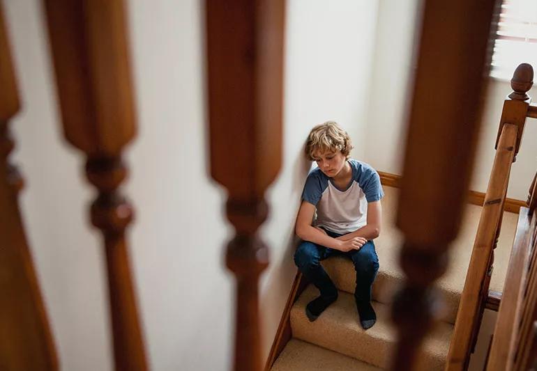 Teen sitting alone on staircase