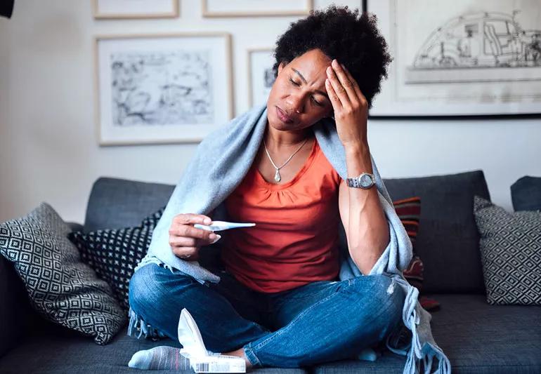 “The flu can make you feel like you’ve been hit by a truck, with muscle aches and/or a headache,” Dr. Rehm explains. “Colds come on more gradually, and are more likely to cause a stuffy and runny nose.”
