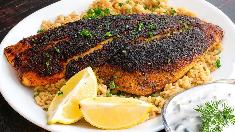 Blackening seasoning gives salmon fillets a restaurant-like quality that’s easy to achieve with the broiler. A simple, delicious brown-rice pilaf forms the base, and a savory yogurt sauce with onion and cucumber adds tang. Besides containing heart-healthy omega-3s, this dish is rich in protein, fiber and phytonutrients.
