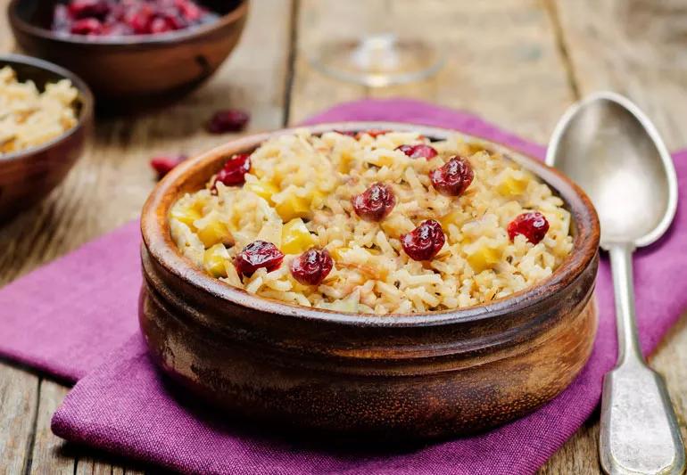 This rice pilaf dish is simply delicious. Fresh apples and dried fruit add an interesting dimension, while curry, ginger and cinnamon add a depth of warmth — and brown rice will keep you feeling full and satisfied.