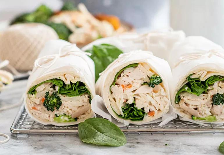 Crunchy broccoli slaw chicken wraps