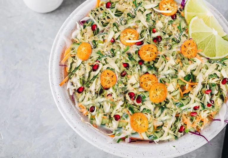 This creative slaw offers up a super-duper, tasty and surprisingly wonderful combination of seasonal ingredients that will make you love winter — or at least resent it less!