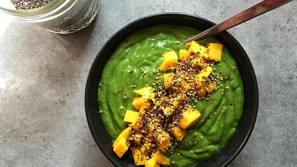 Ready to trade the smoothie glass for a bowl? Try this recipe, which is packed with the leafy green goodness of spinach. Use the topping recommendations below, or experiment with your own.