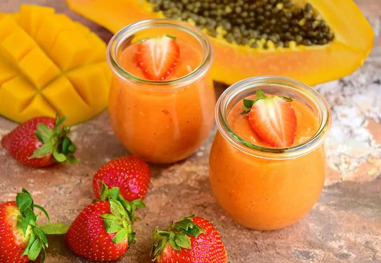 Smoothies, whether you like them creamy, sweet or bitter, are a smooth way to sneak more fruits and veggies into your diet. This smoothie will entice you with mango, grapes, strawberries and peaches — plus various veggies, yogurt and chia seeds. Blend one up for friends and family!
