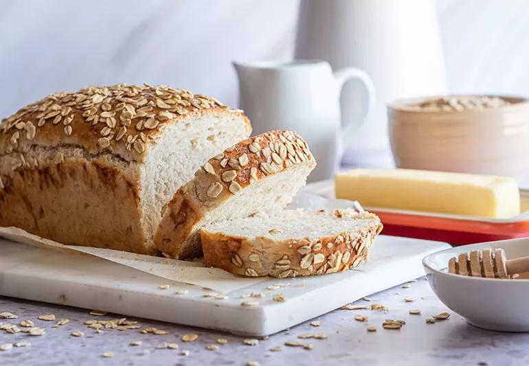 Whether you prefer to knead and bake it in a pan or want to use your bread machine, this recipe will be a favorite. Oats and honey add flavor to traditional bread, giving it an extra kick your family will love. The quick oats are healthy and add texture, and the slight honey-sweet taste is sure to please!