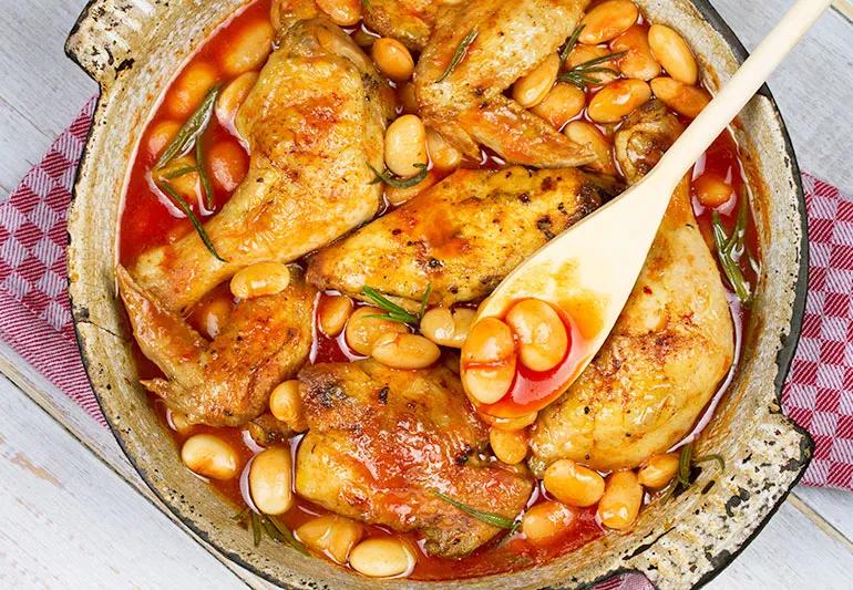 Comfort food doesn’t have to land like a brick in your belly. This entree features Mediterranean diet superstars like beans, onion, garlic, tomatoes, rosemary and parsley. Lean chicken breasts, pan-roasted with olive oil and smoked paprika, complete the dish — no starchy fillers here!
