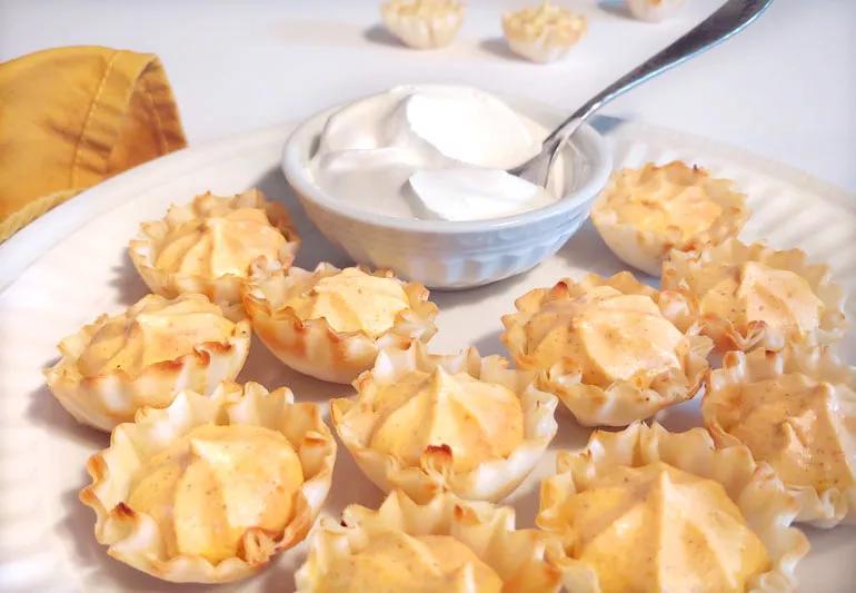 These bite-size delectables offer the rich flavor of cream cheese and ricotta (both low-fat), along with the cinnamon and pumpkin flavors that are so welcome at this time of year. Small but oh-so satisfying — and the pumpkin puree offers nutritional benefits, too.