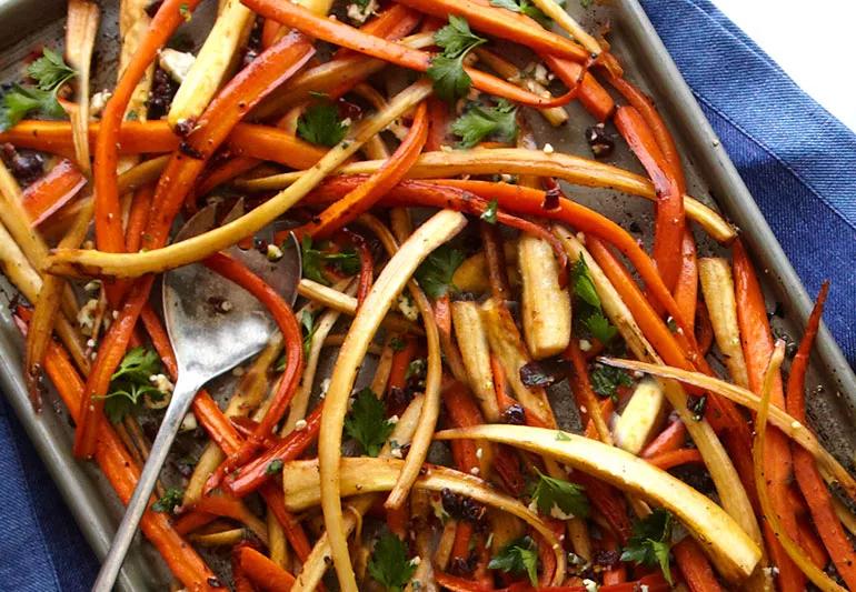Serve this colorful plate of roasted root veggies and watch how quickly they disappear! With lemon and fresh dill sprigs, these tasty vegetables trump even the most delicious French fries, and they’re healthier too.
