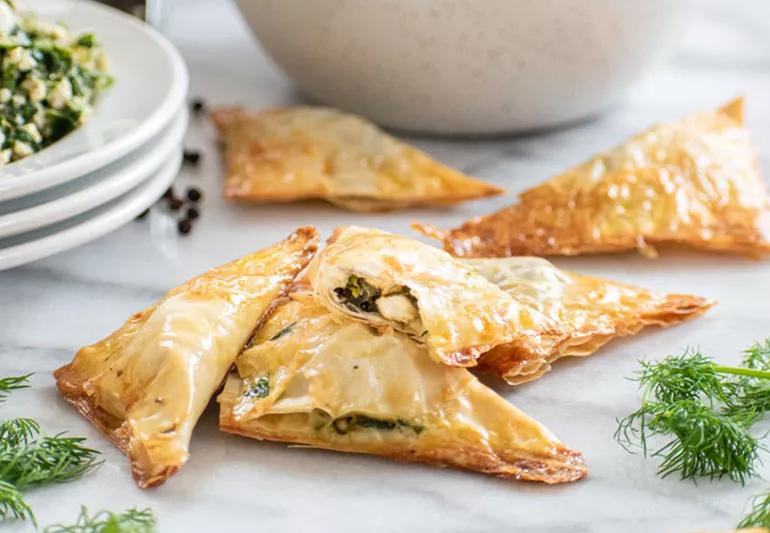 This savory Greek appetizer is usually made with a lot of butter and a lot of feta cheese, which is delicious, but not really heart-healthy. Our just-as-delicious recipe offers a lighter, heart-healthier alternative!