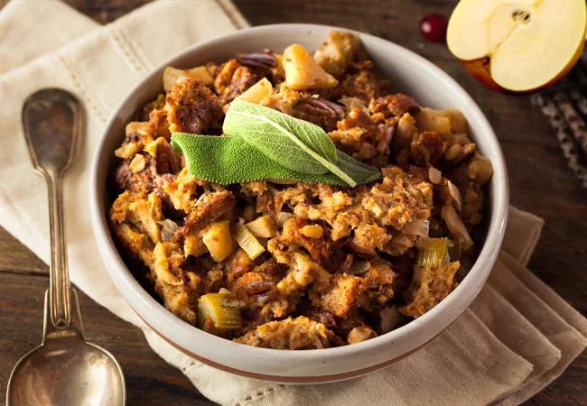 If you’re in search of a new family favorite stuffing (or dressing, if you don’t stuff the bird), look no further! This whole-grain version is filled with apples, pears and toasted pecans and walnuts, and is sure to be a crowd-pleaser.