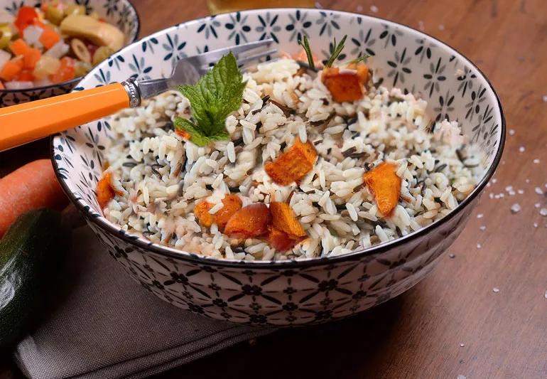 Tired of the same-old side dishes? Try this flavorful grain combo instead! Wild rice, a delicious and highly nutritious cereal grain, is a distant relative of the rice you might be accustomed to eating. Its nutty flavor, chewy texture and high levels of protein and omega-3 fatty acids make it uniquely satisfying. Along with quinoa, sweet potato, celery, parsley and sage, this dish is hearty and delicious enough to be a fantastic new side — or even a main one! With flavor galore, this dish will put a smile on your face all fall and winter long!
