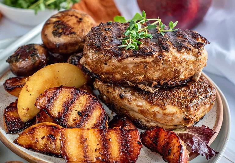 View image online (https://assets.clevelandclinic.org/transform/a2edd94b-d178-4392-829c-387fc85983d0/CC_HE_PorkchopPeaches_jpg)