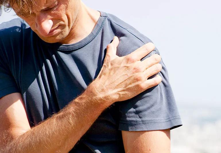 “As you raise your arm up, the tendons or bursa can get pinched between the humerus and the collar bone (clavicle) on top of the scapula,” explains physical therapist Kelly Kinsey, PT.