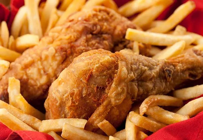 Deep-fried food such as French fries and fried chicken are not healthy choices. The food absorbs fat during the frying process, which isn’t good for your cholesterol, heart health or weight while trying to manage diabetes.