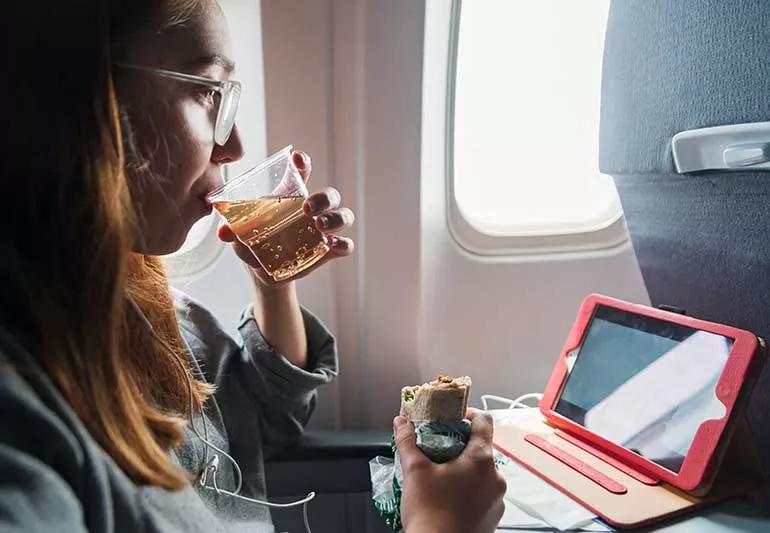 To keep your digestive system moving, you need to keep your body moving. While this can be hard to work around if you’re stuck on a plane, train or automobile, try your best to move around and stretch as much as you can by scheduling stretching breaks or doing small, seated workouts.