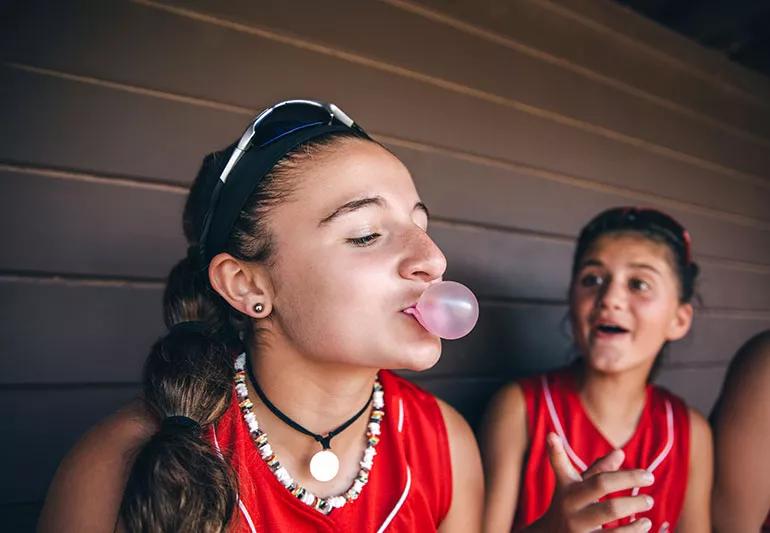 The American Academy of Pediatrics says the occasional piece of gum is OK for children ages 5 and up — just be sure that before giving gum to your child, they understand that it’s not something they should swallow.