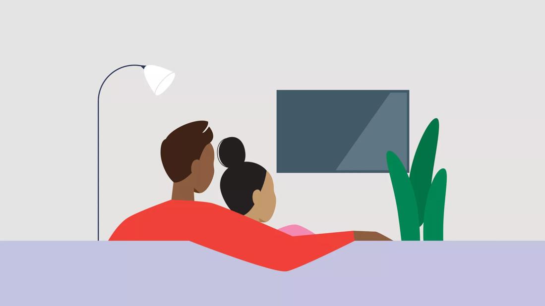 Couple sitting on sofa watching TV