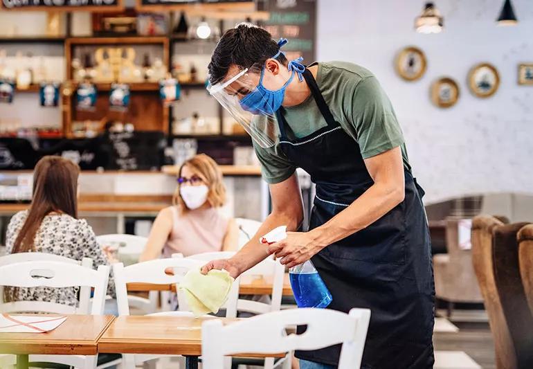 Many essential workers are required to enter a lot of different homes throughout the day. If your job calls for you to do so, Dr. Khabbaza recommends wearing a face shield in addition to your mask to protect yourself. “Infected droplets getting into the eyes is another way that you can get COVID-19. If your eyes are covered, even if somebody is unmasked around you and talking, the droplets they’re producing can’t go through that shield. So really think of a face shield as an extra layer of protection.”