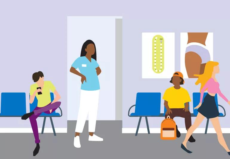 A snapshot of a waiting room at a women's health clinic.