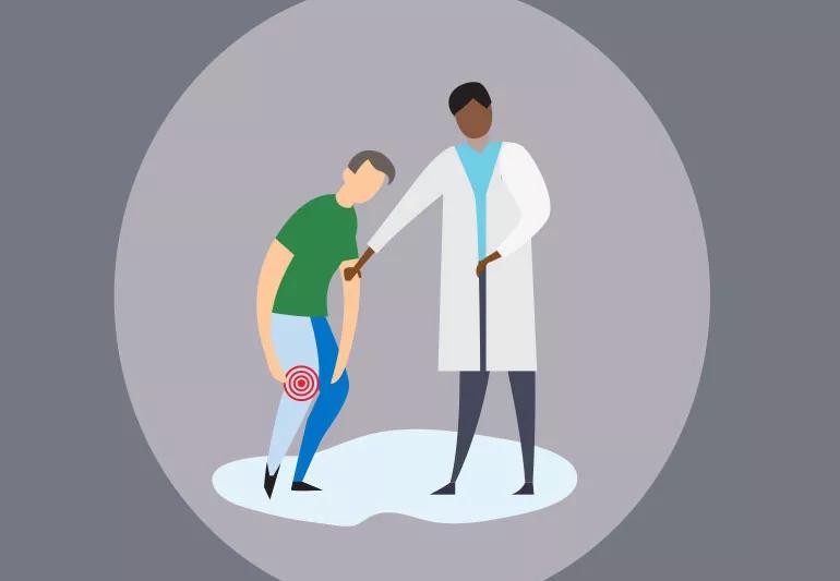 Illustration of doctor and patient with arthritis in knee