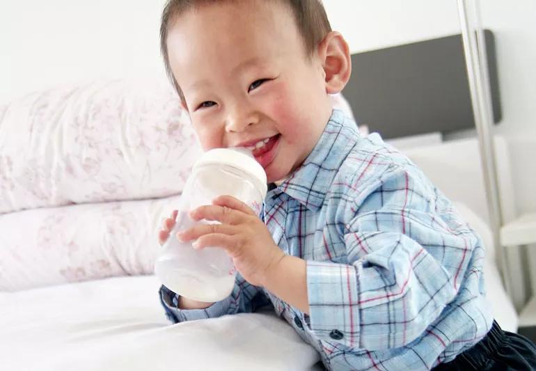 1 year old drinking milk from bottle