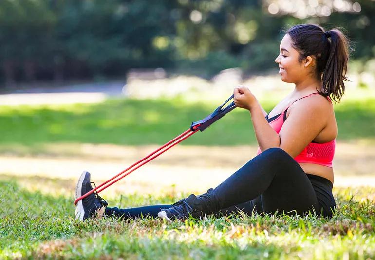 Woman using resistance band for training