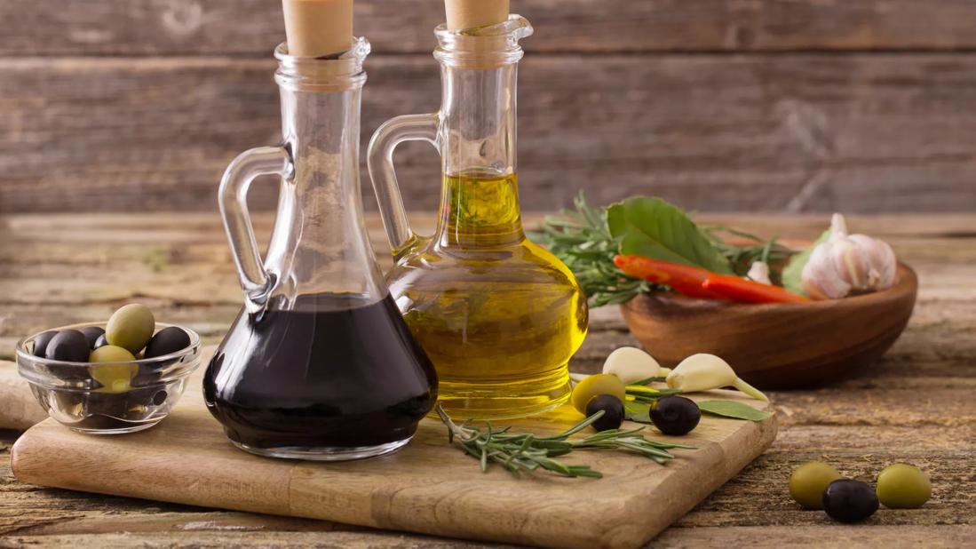 Yes, we’re talking about oil and vinegar. More specifically, extra-virgin olive oil (EVOO) and apple cider or red wine vinegar.